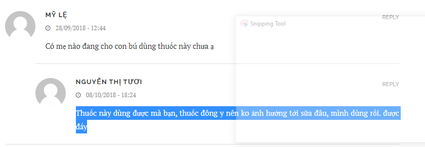 Tài khoản NGUYỄN THỊ TƯƠI chia sẻ: “Thuốc này dùng được mà bạn, thuốc đông y nên ko ảnh hưởng tới sữa đâu, mình dùng rồi. được đấy.”