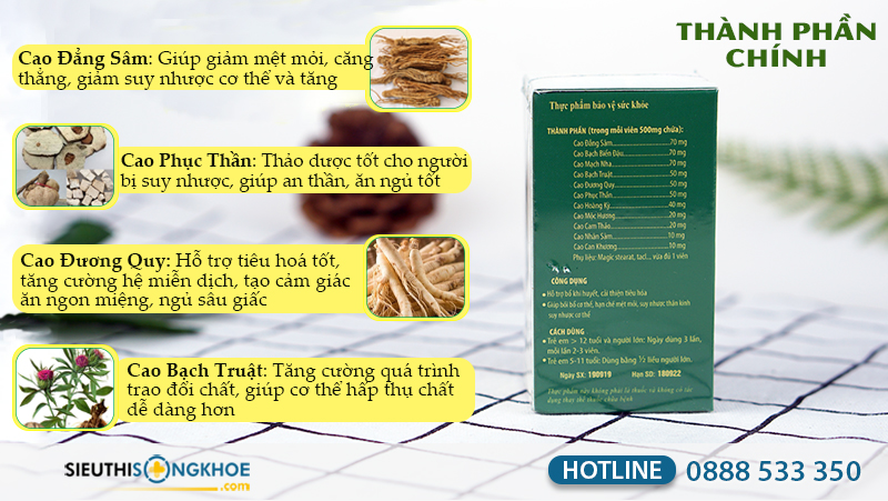 Thành Phần Chính Có Trong Viên Uống Tăng Cân Tâm Tỳ Vương